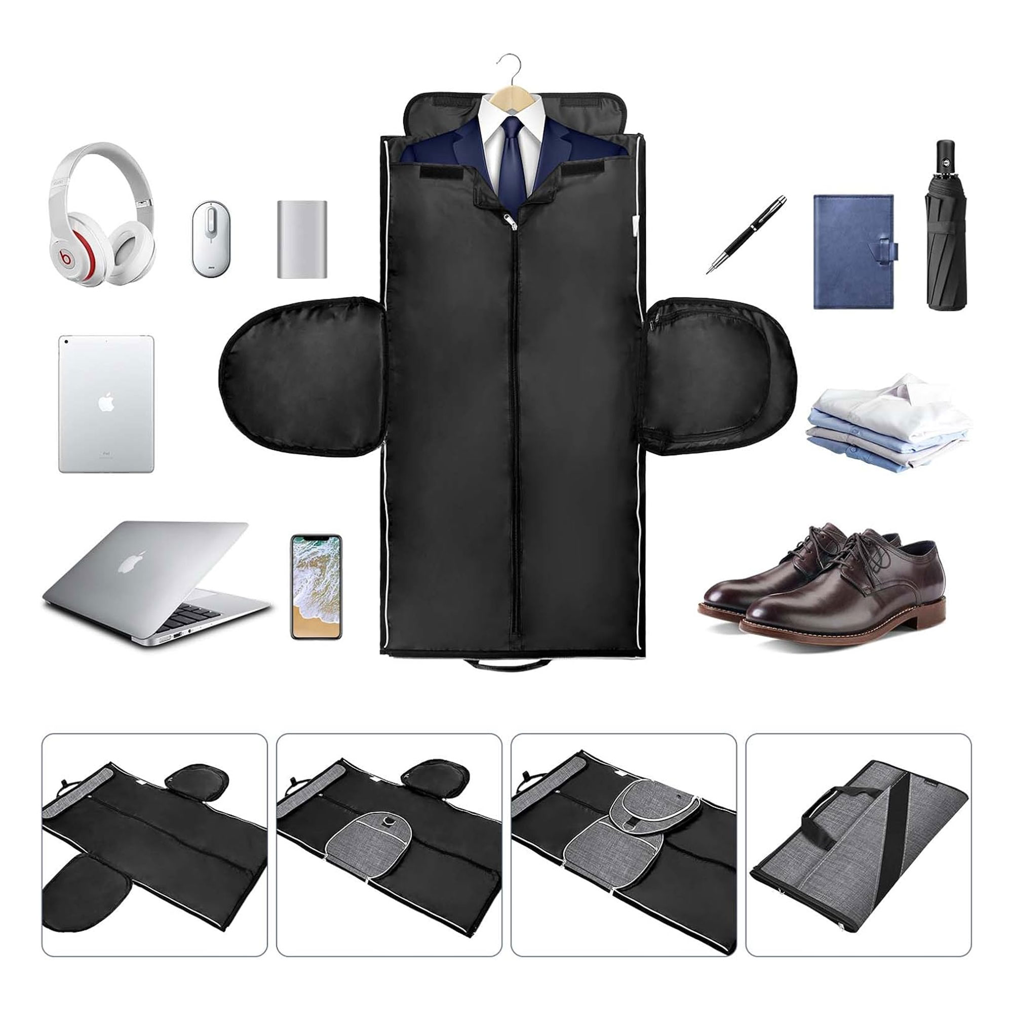 سافر ببدلتك.. والبسها فور الوصول كأنها مكوية! 👔✈️ هل تعاني من كرمشة البدلة أو الثوب عند وضعها في شنطة السفر العادية؟ نقدم لك الابتكار الأذكى للمسافرين: حقيبة الأعمال المتحولة. تفتح بالكامل لتضع بدلتك بشكل مسطح (دون طيها)، ثم تغلق السحّاب لتتحول إلى شنطة سفر عصرية تتسع لباقي ملابسك وأحذيتك!