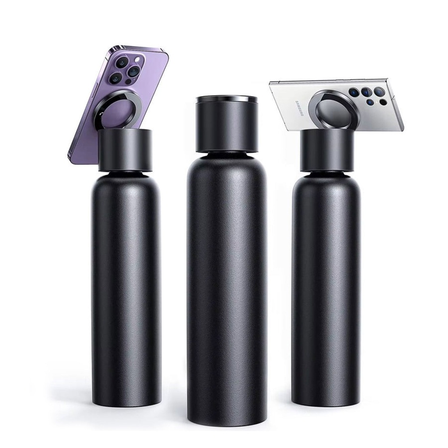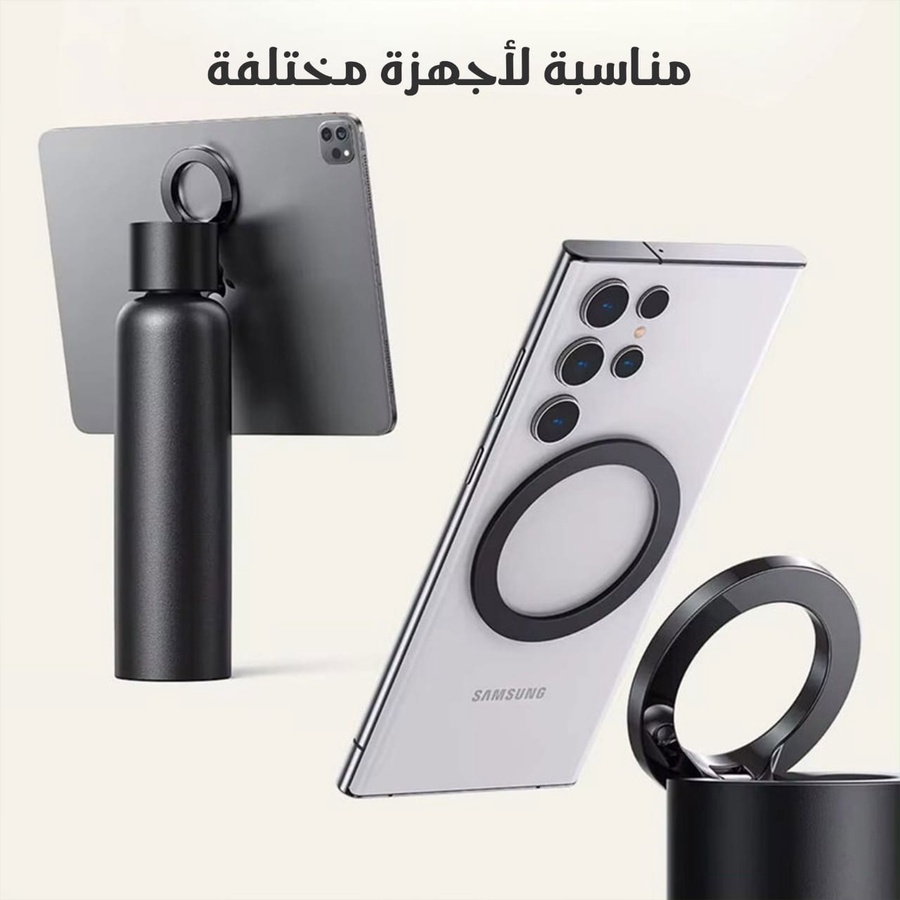 ابتكار 2×1 يجمع بين زجاجة مياه ستانلس ستيل مزدوج الجدار وحامل جوال مغناطيسي عملي يمنحك ترطيب دائم + استخدام مريح للجوال في المكتب، الجيم، والسفر. تحفظ البرودة حتى 24 ساعة والحرارة حتى 12 ساعة، وتوفّر ثباتًا مثاليًا للتصفح والتصوير من أي زاوية. 🧊🔥